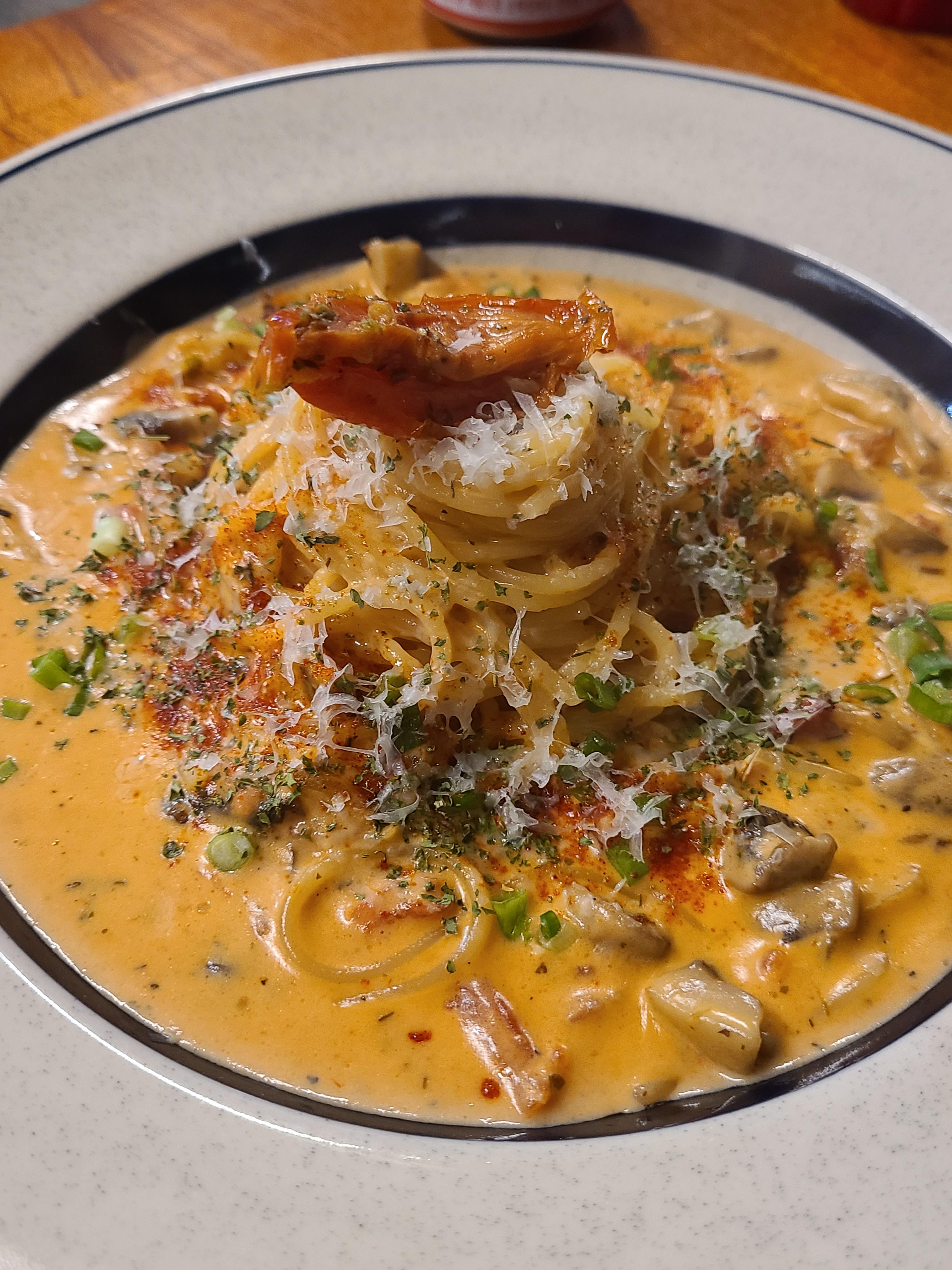 두툼한 베이컨의 식감도 좋고, 양송이는 역시 크림의 단짝이다.